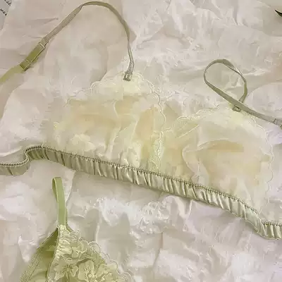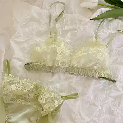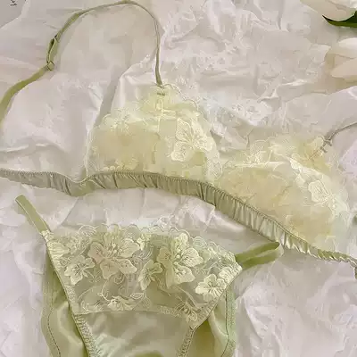 French triangle cup embroidered ultra-thin underwear set without steel ring big chest small breathable small chest bra underwear