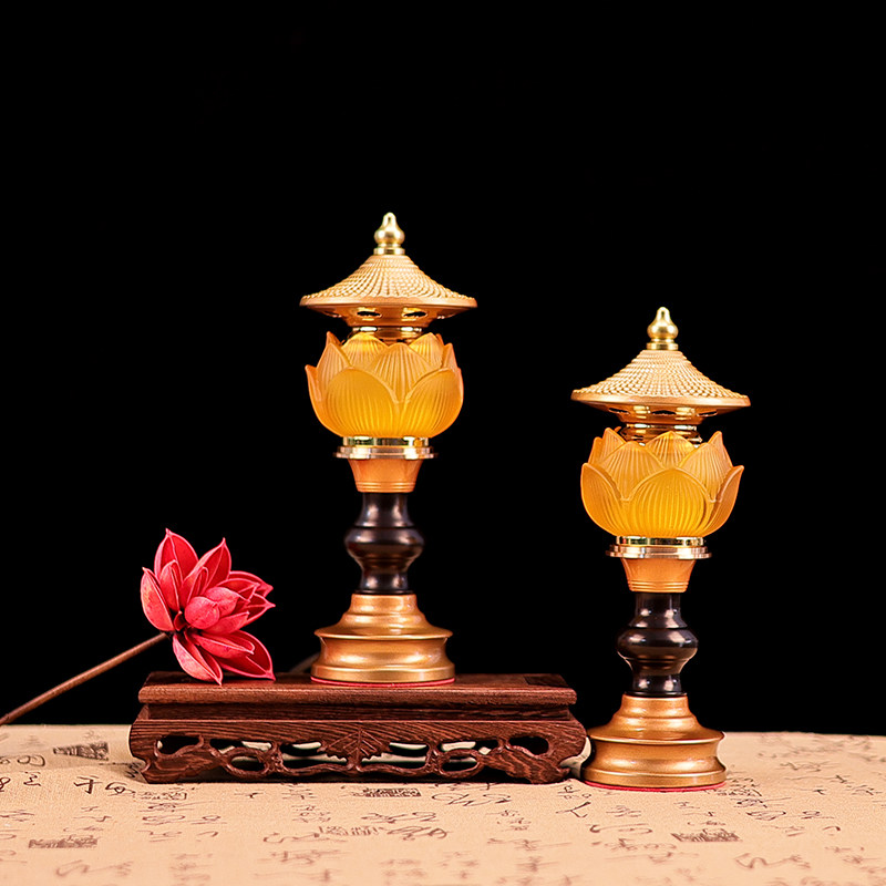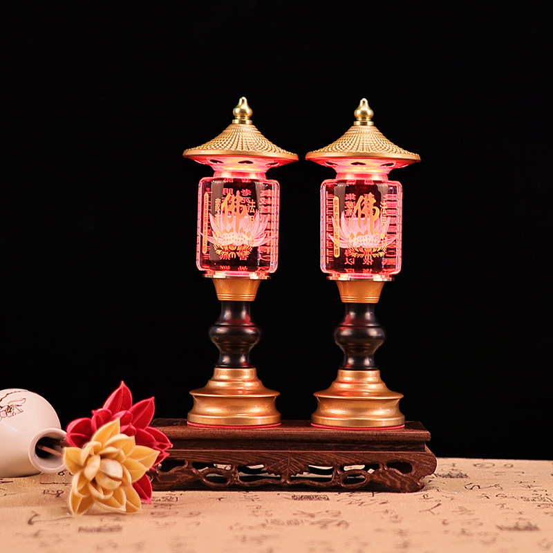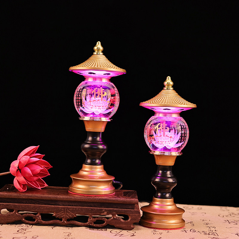 LED Crystal Lotus Lamp Buddha Lamp Amber Lamp Colorful Household Buddha Lamp Glass Buddha Lamp Charging Plug-in Pair