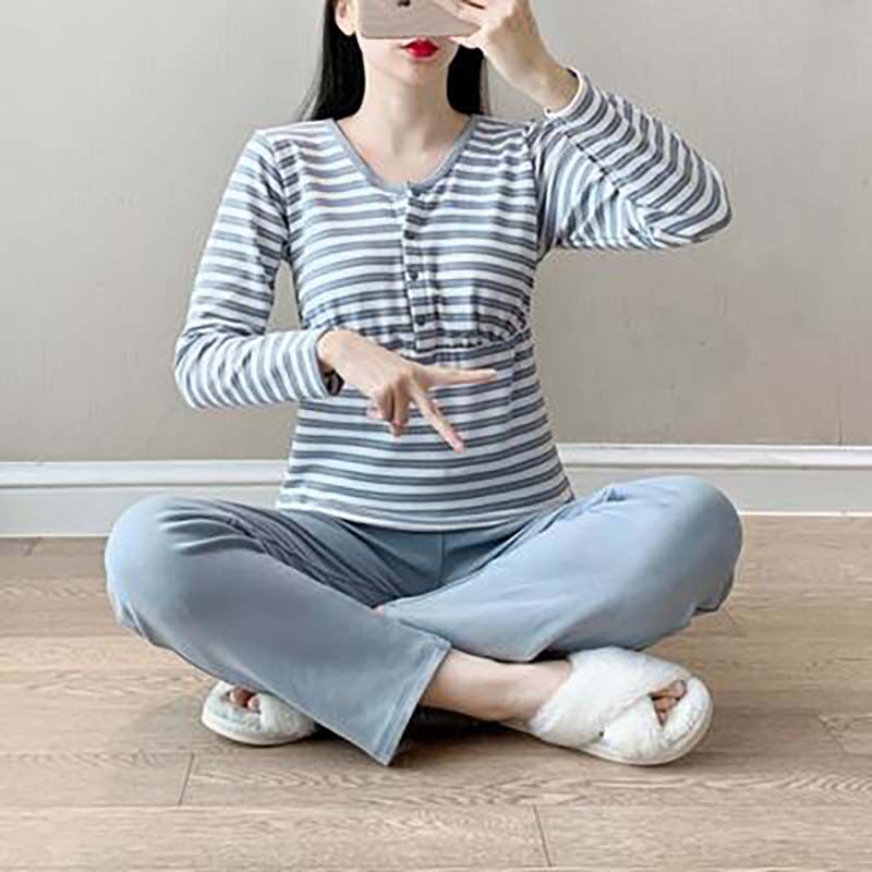 Pregnant Woman Autumn Clothes Single single jacket Home Clothing Postnatal Breastfeeding Pyjamas With Chest Cushion Pure Cotton Moon Subwear Spring Autumn And Winter Warmth
