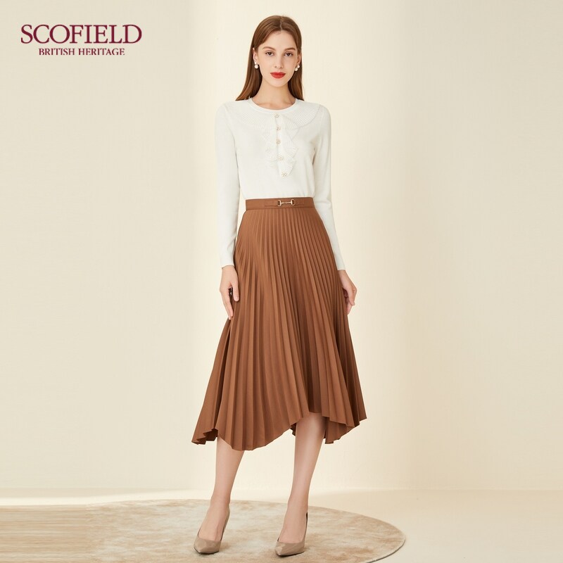SCOFIELD WOMEN'S DRESS ROUND COLLAR FRONT FLAP LOTUS LEAF SIDE DESIGN ELEGANT COMMUTE FASHION SWEATER MALL COSCO
