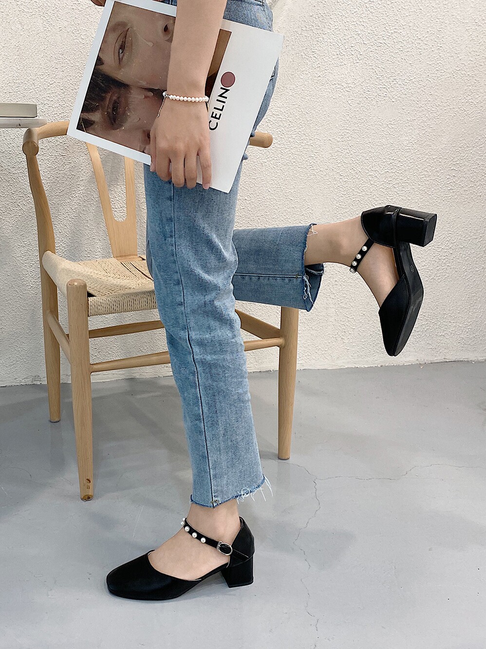 Overseas Pearls Sandals Shoes 2021 New Ladies Fashion Baotou Women Shoes 100 Hitch Thick Heel Single Shoes High Heel Shoes