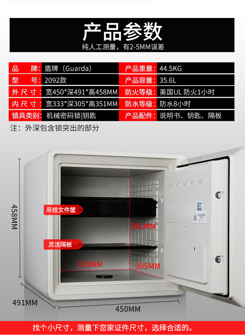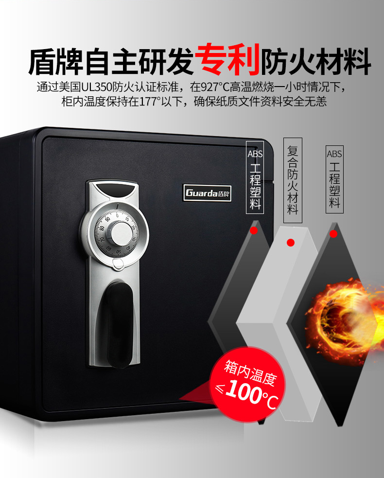 China Hong Kong Shield safe home small invisible fire protection waterproof burglar-proof office small 45cm high safe box old mechanical code lock into wall Wardrobe UL Fire Protection Certification