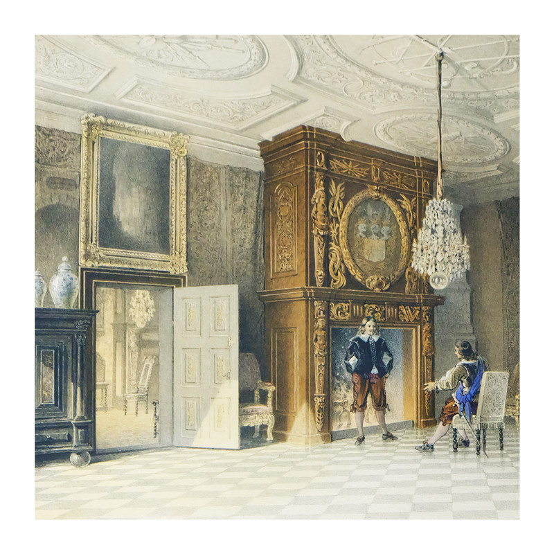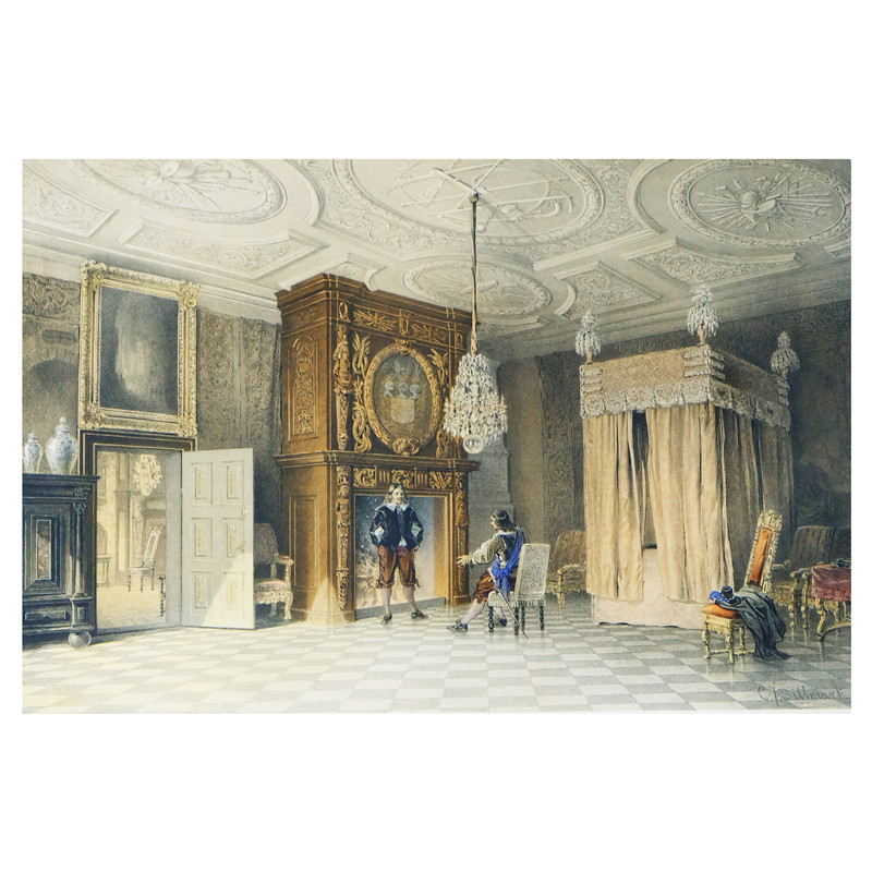 1860 Corroded and carved gravure copper engraving "Wrangel's Bedroom of Grand Marshal Wrangel of Sweden"