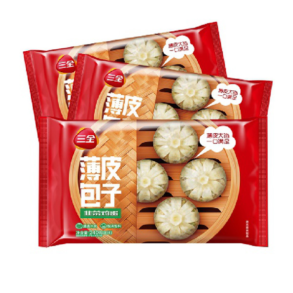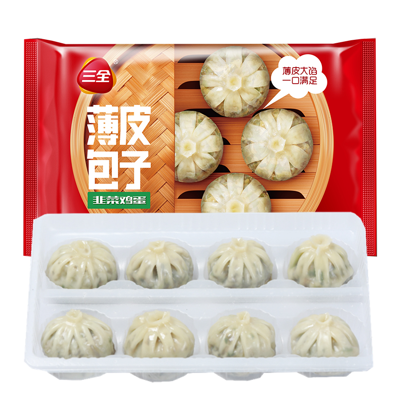 Sanquan Xiaolongbao frozen breakfast leek egg vermicelli thin skin bag 240g*3 bags of 24 convenient instant buns