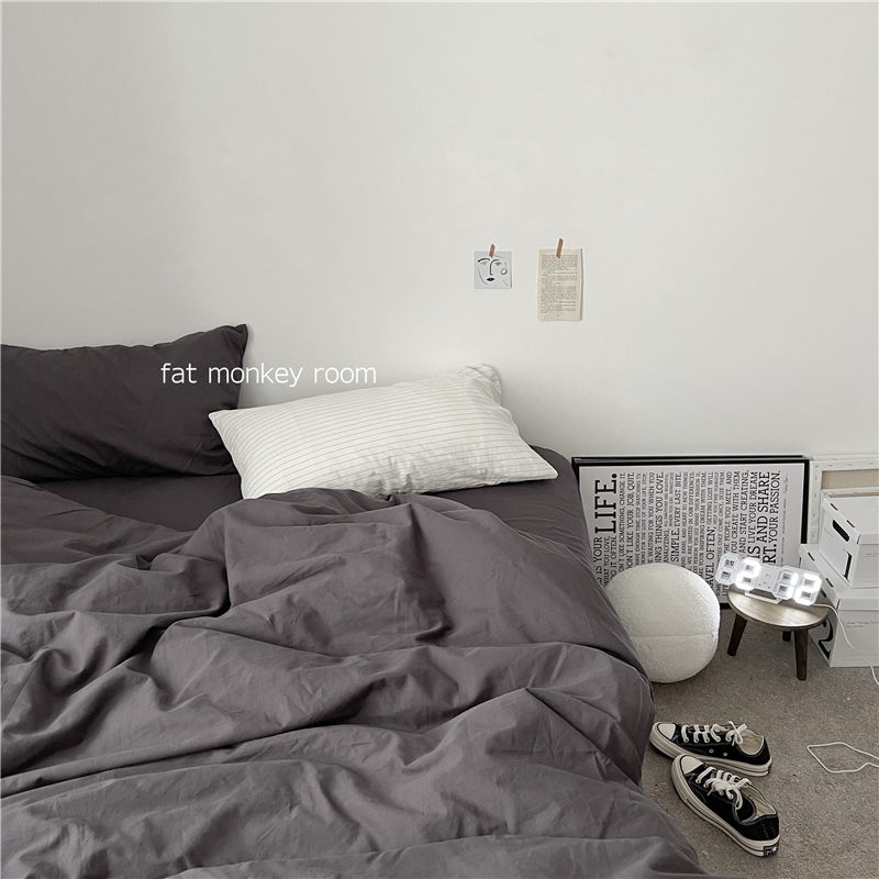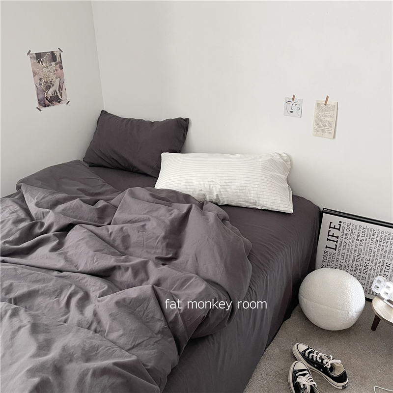 Boyfriend | middle ancient wind | extremely minimalist dark grey cold wind pure cotton washed cotton bed goods four pieces of lodgings three sets-Taobao