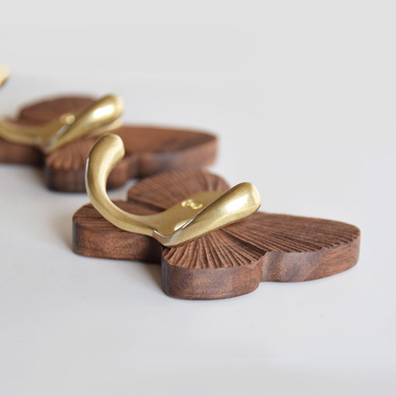 Solid wood porch hook into creative butterfly walnut real copper sticky hook coat hook after home door clothes hook