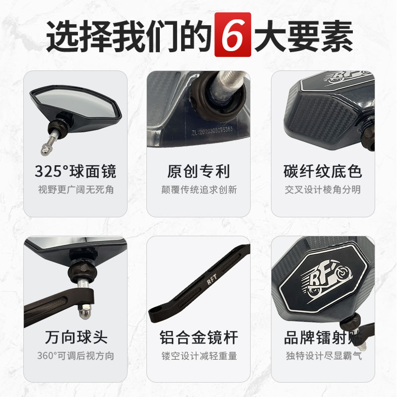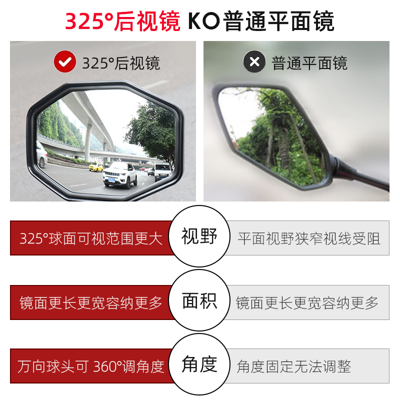 Motorcycle ultra - wide angle rearview mirror modified large field of horizon panorama glass 180 degree mirror