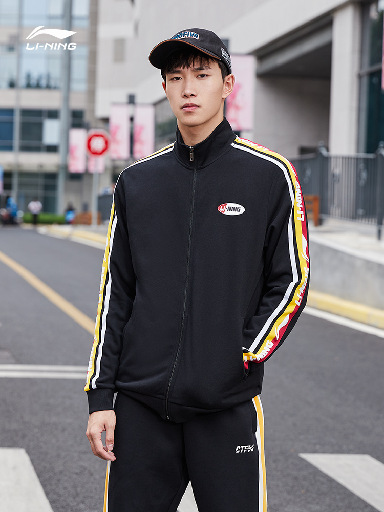 Li Ning string coat men's and women's stand-up collar trend webbing sweatshirt couple cardigan knitted sportswear AWDQ368
