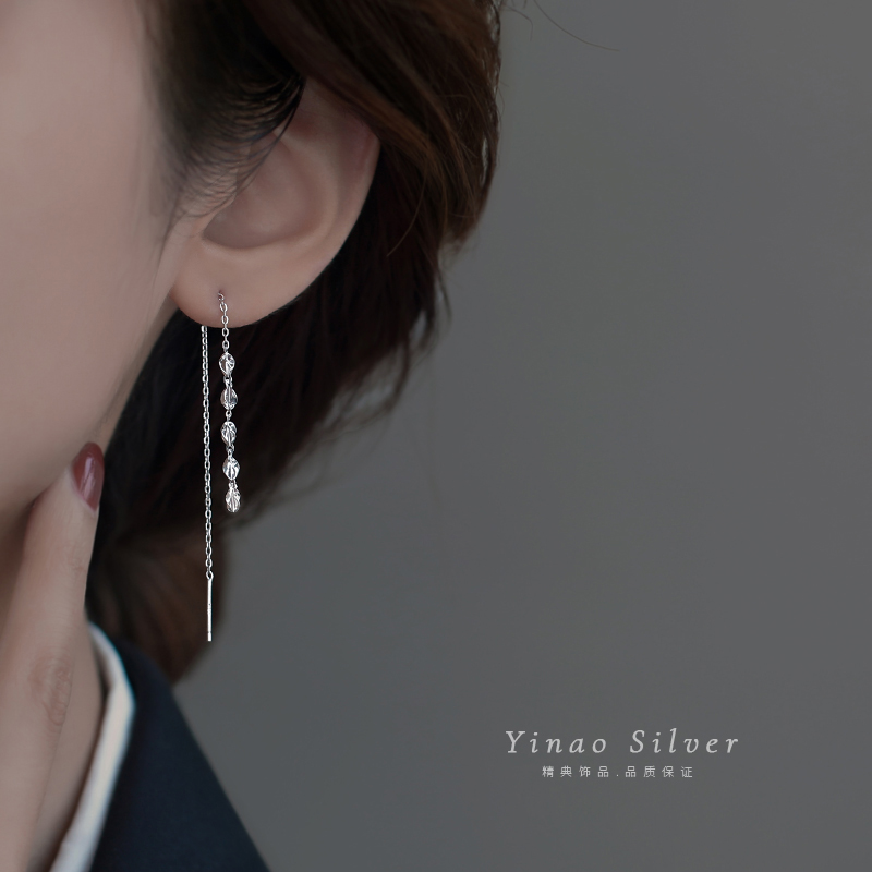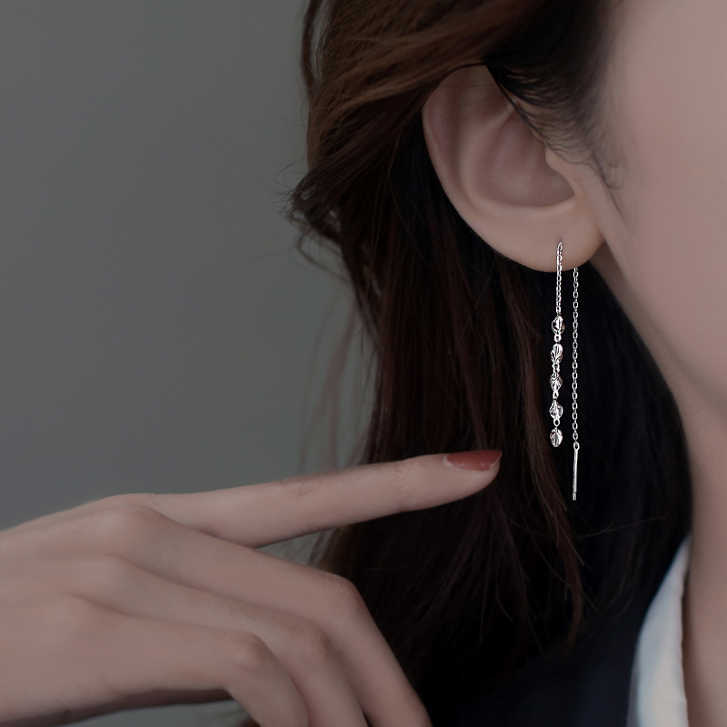 925 sterling silver fringe leaf earline women's 2021 new fashion ins earrings simple long earrings temperament earrings