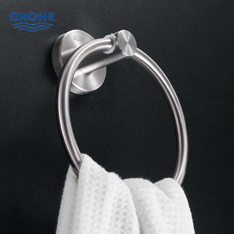 GROHE 304 stainless steel bathroom towel ring towel ring bath towel ring high-grade toilet round towel hanging ring