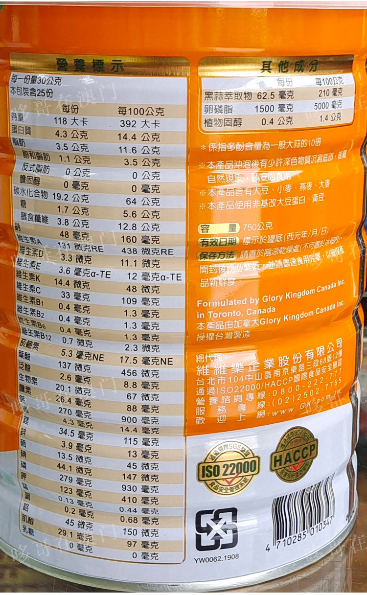 Macao Taiwan Vivile one alcohol conditioner for adult milk powder 750g