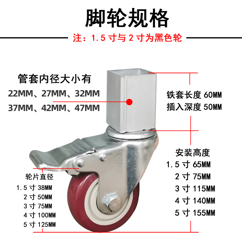 Set foot type universal wheel plug-in belt square multiple specifications customizable large number bearing bearing wheels with brakes