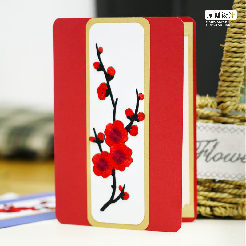 China Wind Greeting Cards Exquisite Plum Blossom Embroidery Senior Thanks Teacher's Teacher Festival Gift Business Creative Personality Handwriting