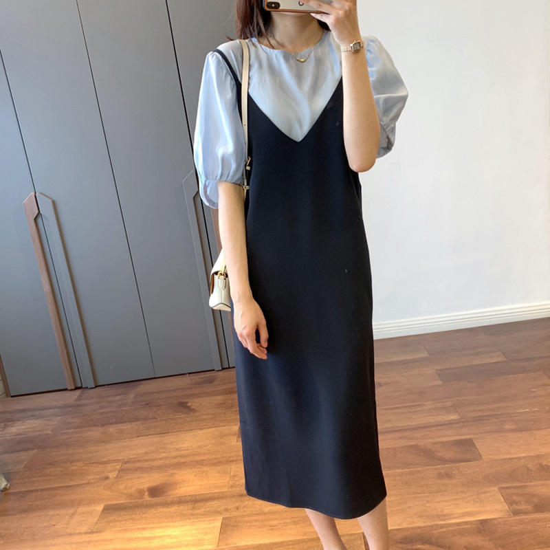 Apricot blouse curry-coloured hanging band skirt blue blouse blue pendant with skirt