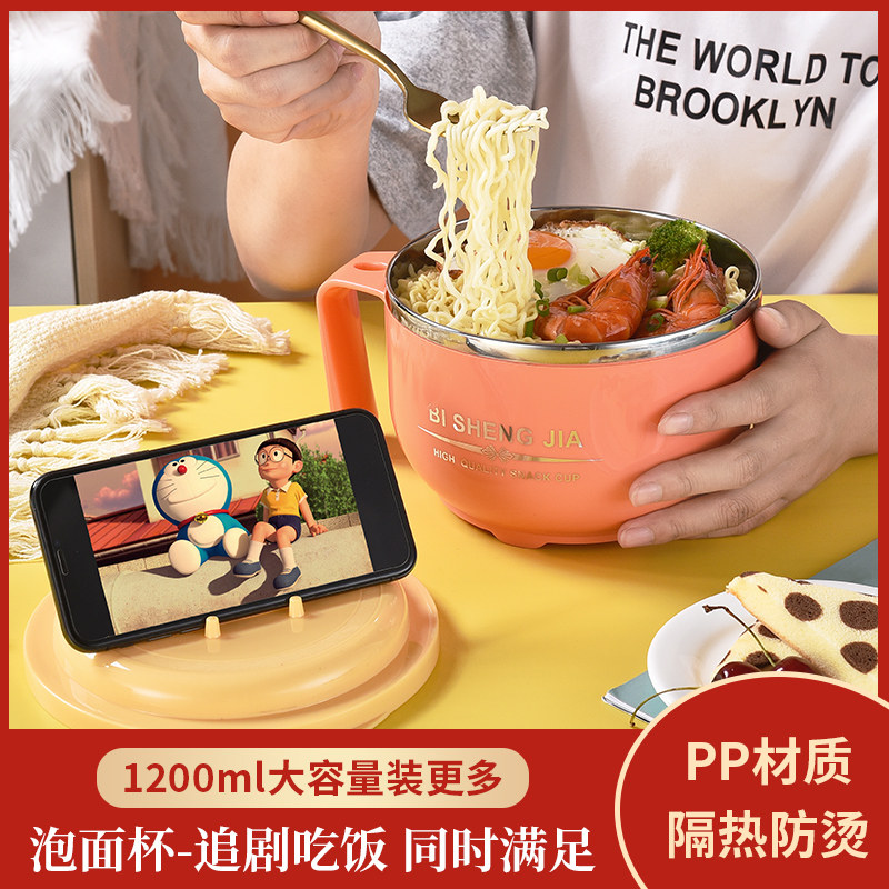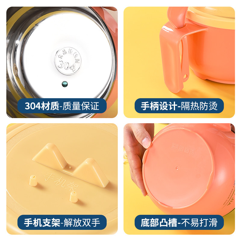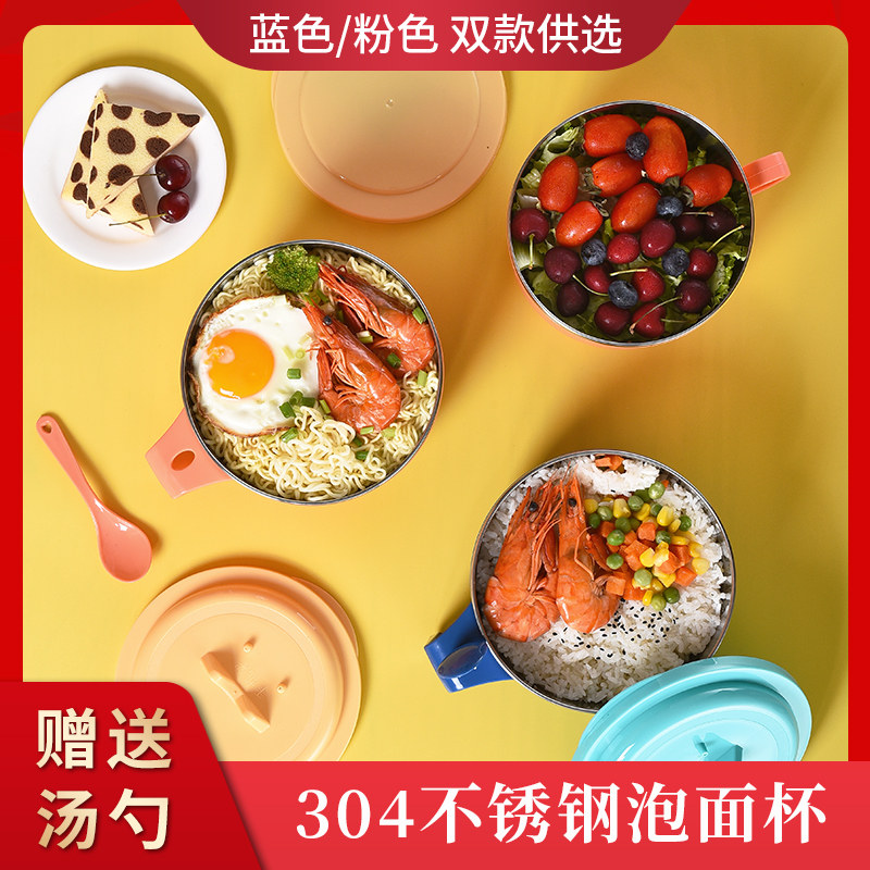 304 stainless steel bubbling noodles bowl with cover large number student dormitory with lunch box convenient noodle bowl Blister Noodle God eat rice bowls-Taobao