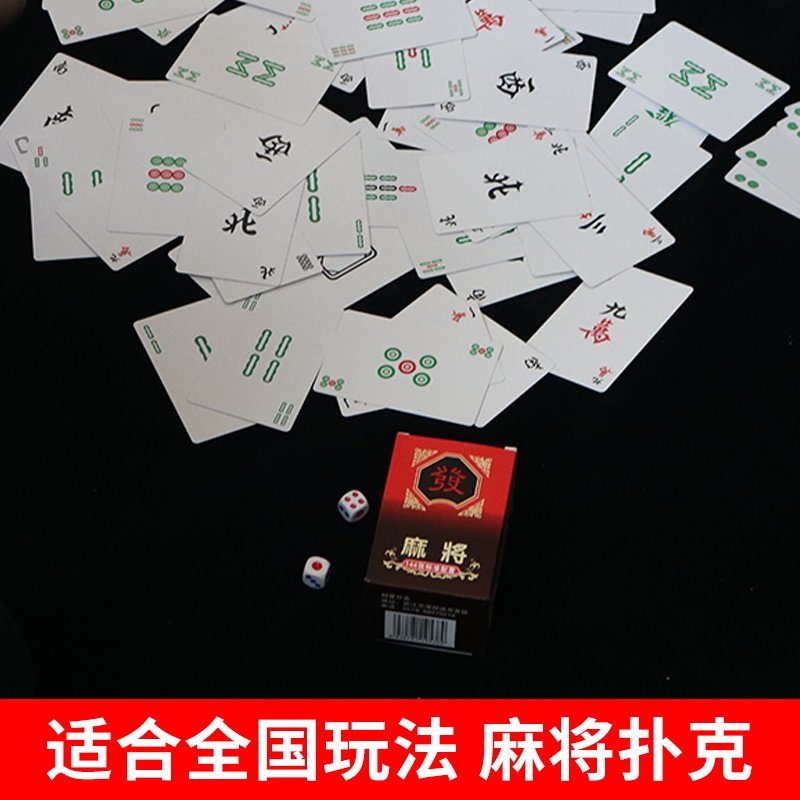 Playing card mahjong 144 mini travel mahjong playing cards waterproof portable function send 2 dice game entertainment