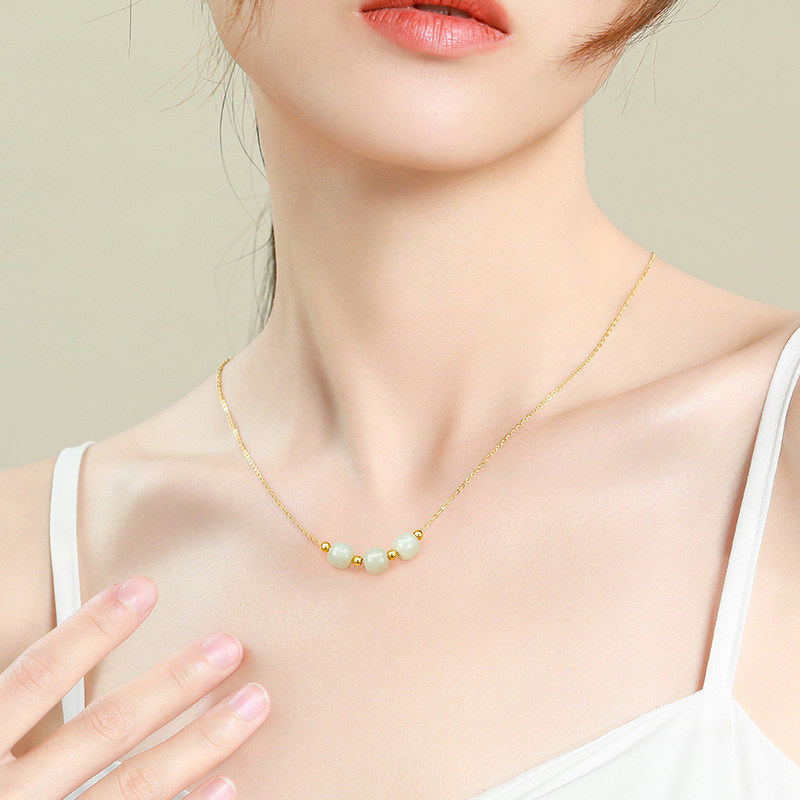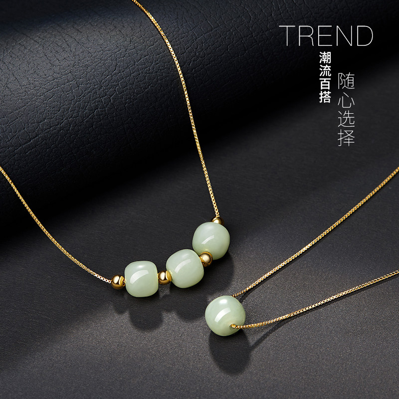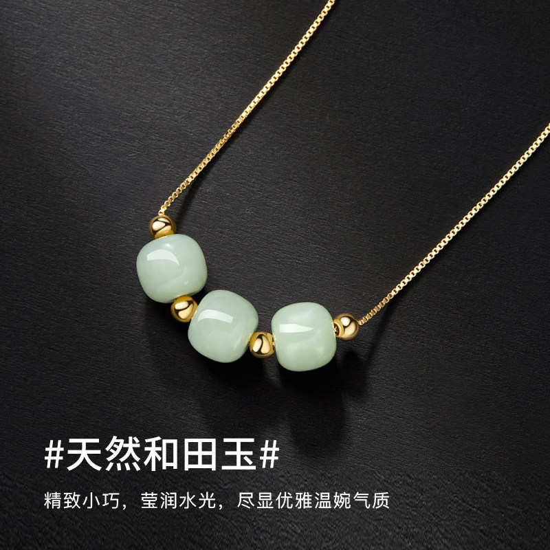 And Tian jade necklace female summer lock bone chain transport pearl road pass string bead pendant light extravagant and small crowdsourced trinity III ornament