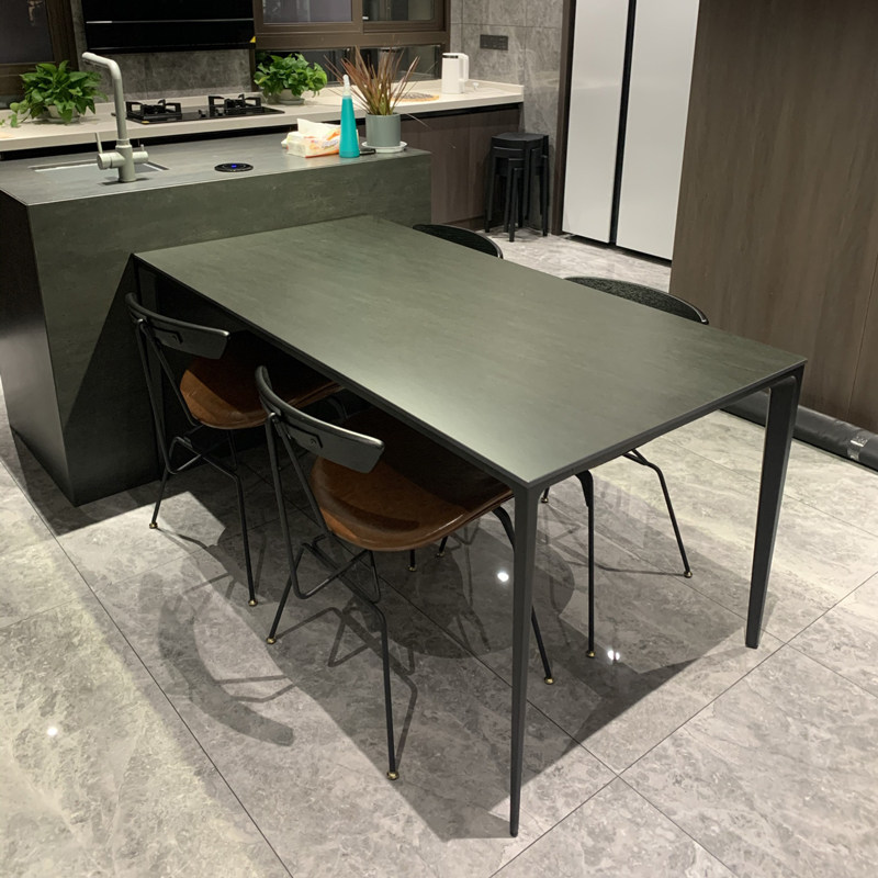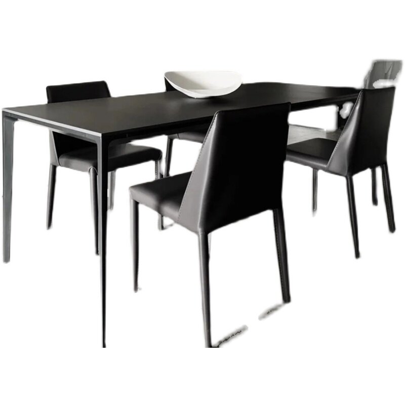 Italian light luxury Net Red pure black pure white rock plate aluminum alloy table Nordic simple multi person minimalist rectangle