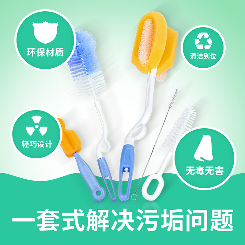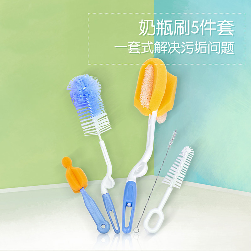 Baby bottle brush Pacifier sponge brush Bottle cleaning brush Straw brush cup brush Five-piece brush set