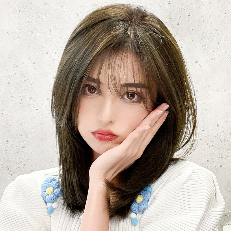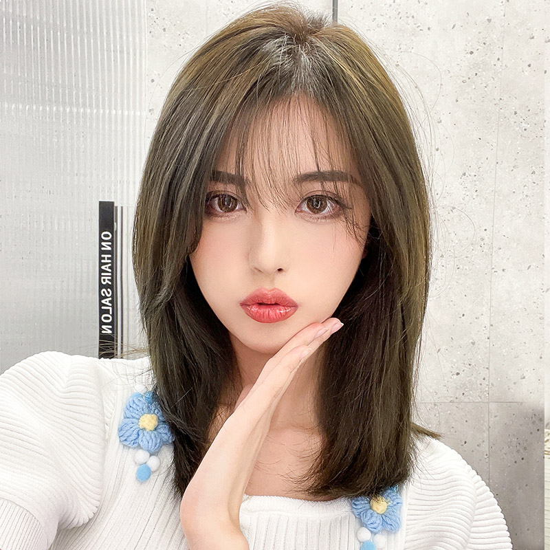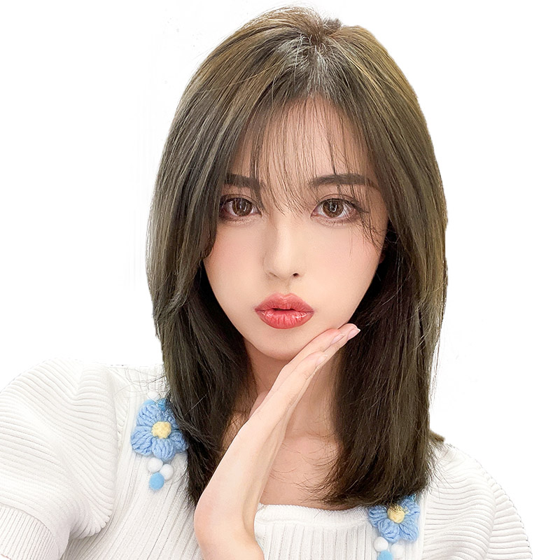 Wig female summer short hair styling natural full head cover net red simulation hair round face age reduction medium long hair wig set