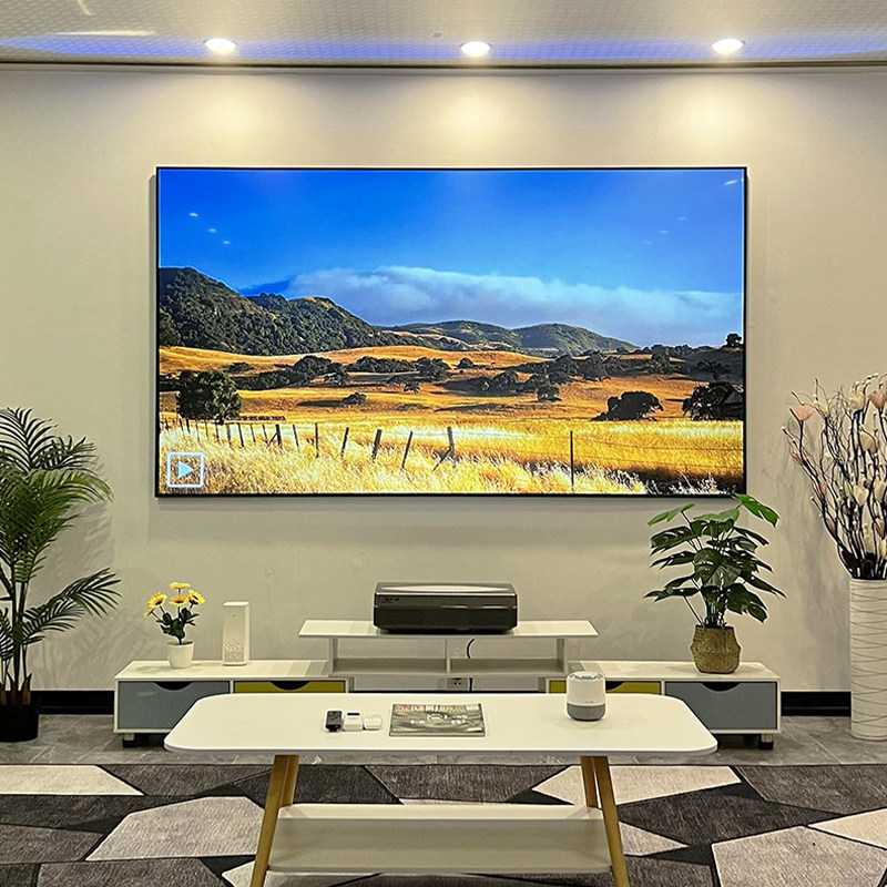 Medium telephoto-ultra short focus special anti-light screen 150 inch Fresnel 100 inch Taiwan black grid projection screen projector screen narrow border picture frame screen laser TV dedicated hard screen