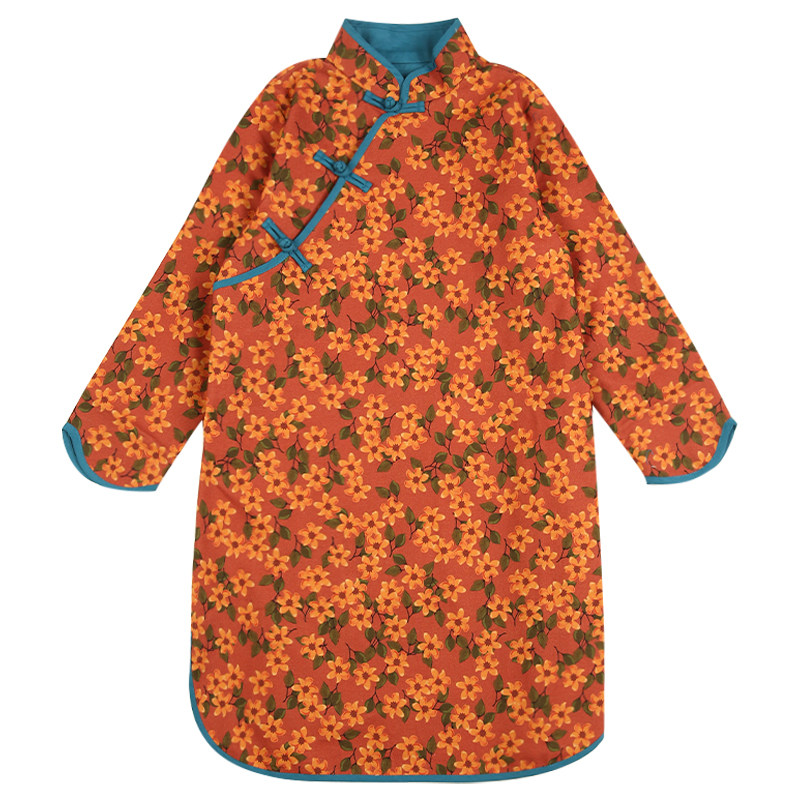 LittleNave Little Naive Girl Autumn Retro Crummy Flower Qipao CUHK Tong China Wind Long Sleeve Foreign Dress
