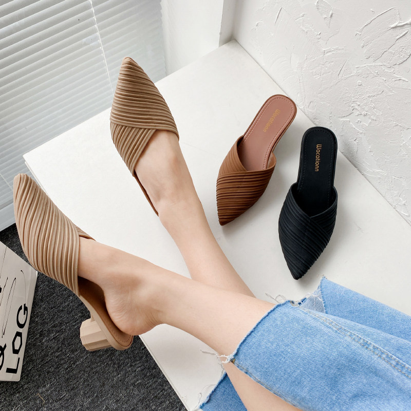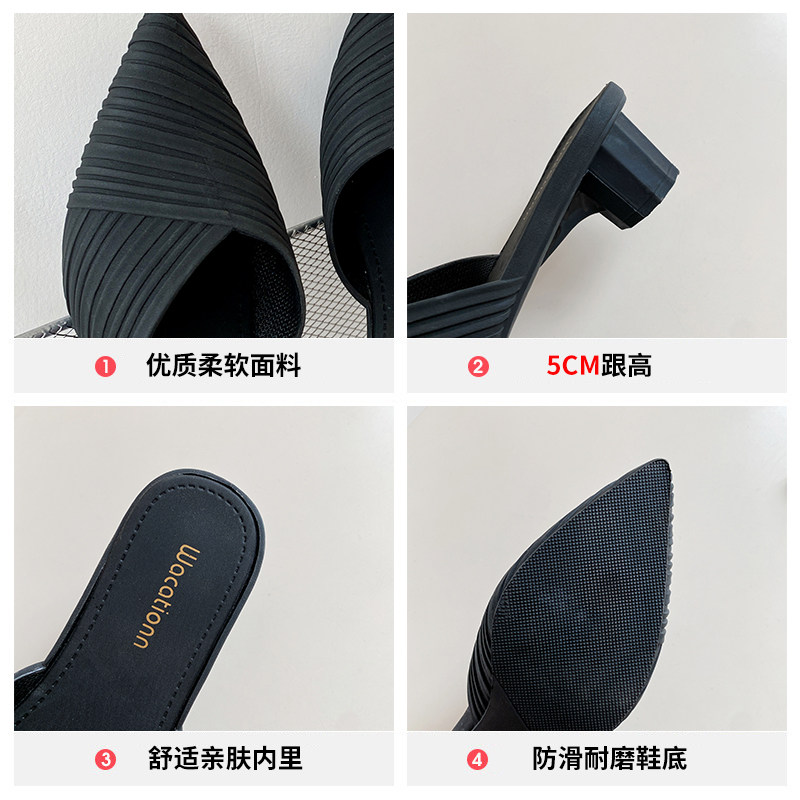 2021 Summer new pointed waterproof rain shoes Low Gang Slope heel High heel slippers Female 100 hitch a foot pedal sandal