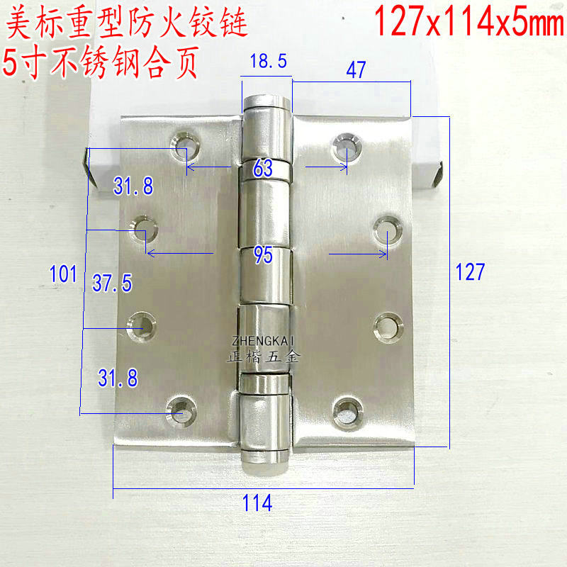 AmericanSUS304 stainless steel hinge 127x114x5 American hole 5 inch thickened heavy hinge 5X4 5X5mm