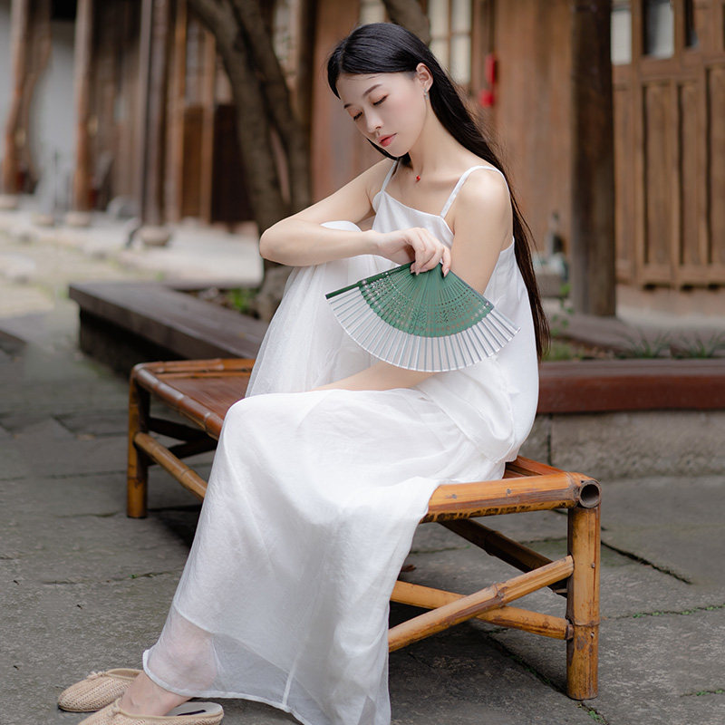 White Hanging Wide Legs Pants Set