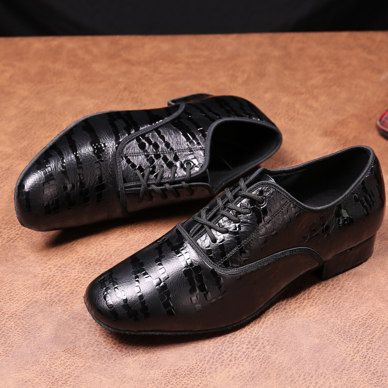 Men's water grass pattern leather men's modern dance shoes square friendship sailor trading dance flat heel comfortable summer breathable