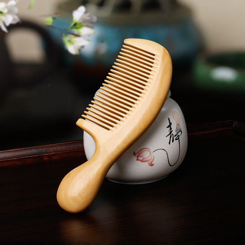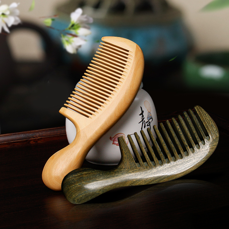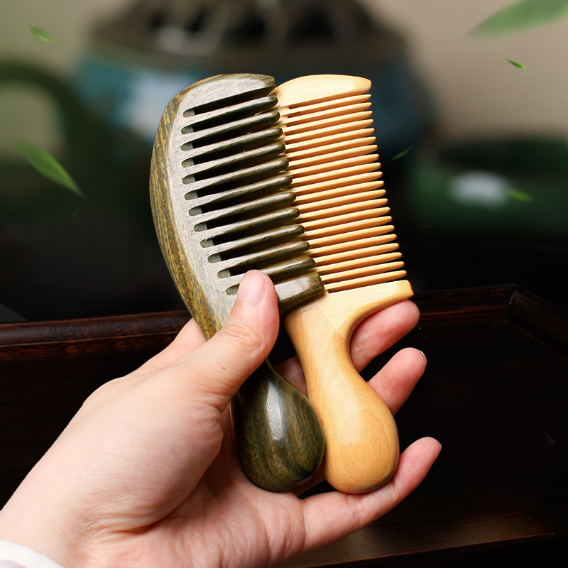 Green sandalwood small round handle wide tooth yellow poplar wood small round handle fine teeth