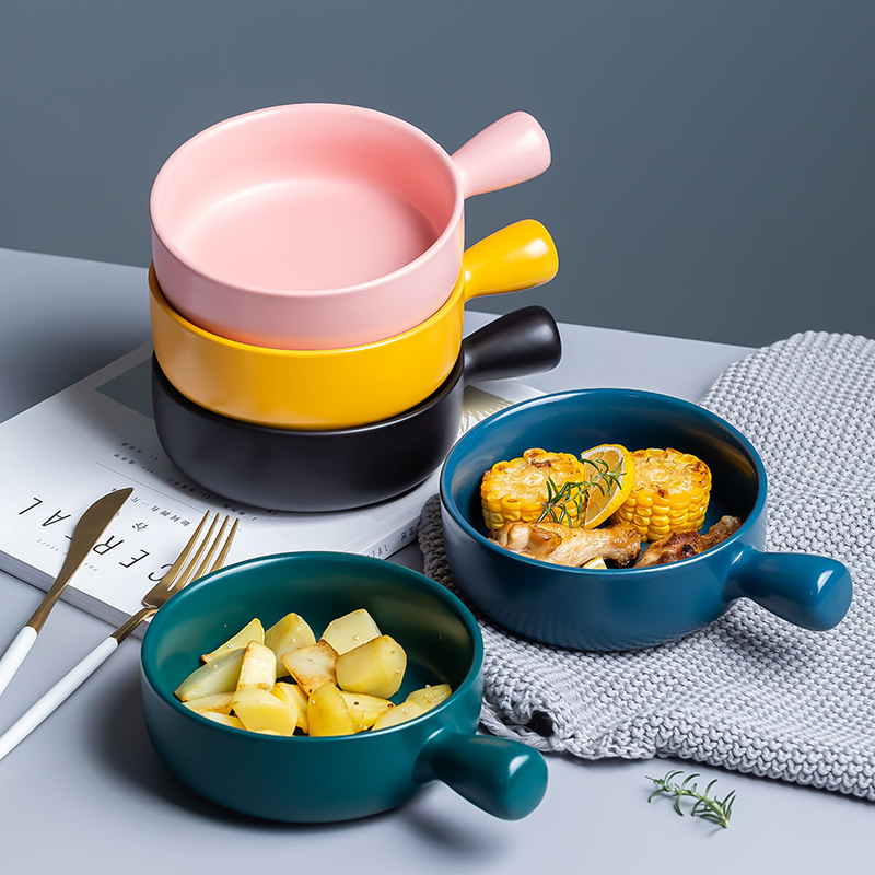 Cutlery with a Blister Bowl Ceramic Baking Bowl Dorm Room With Student Handle Bowl Baking Home Fruit Macko Salad Bowl