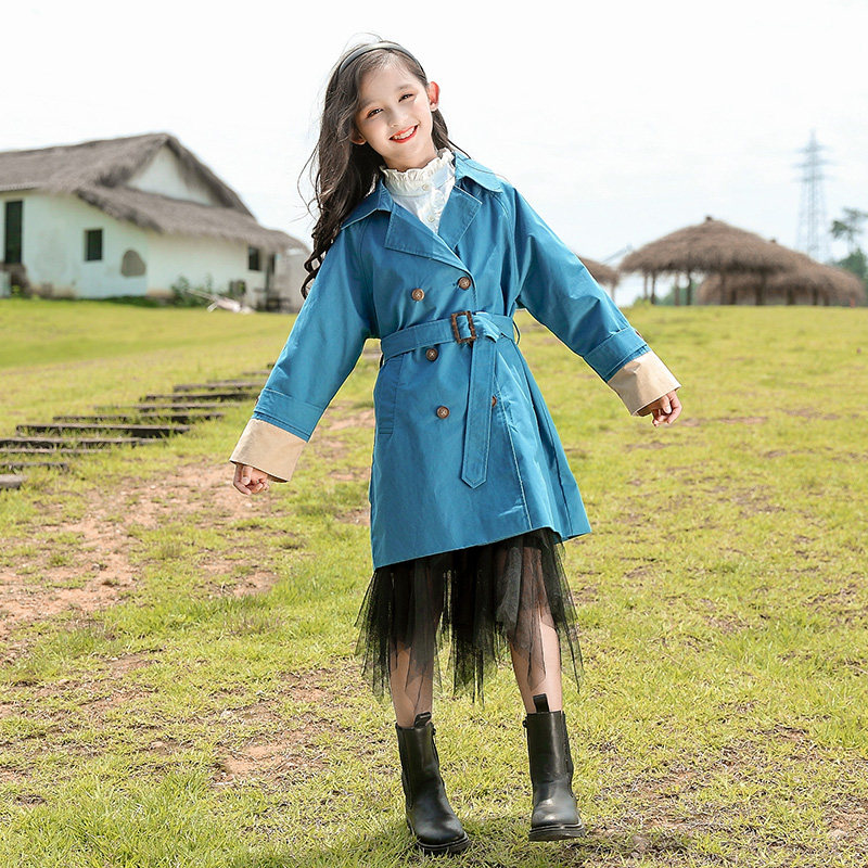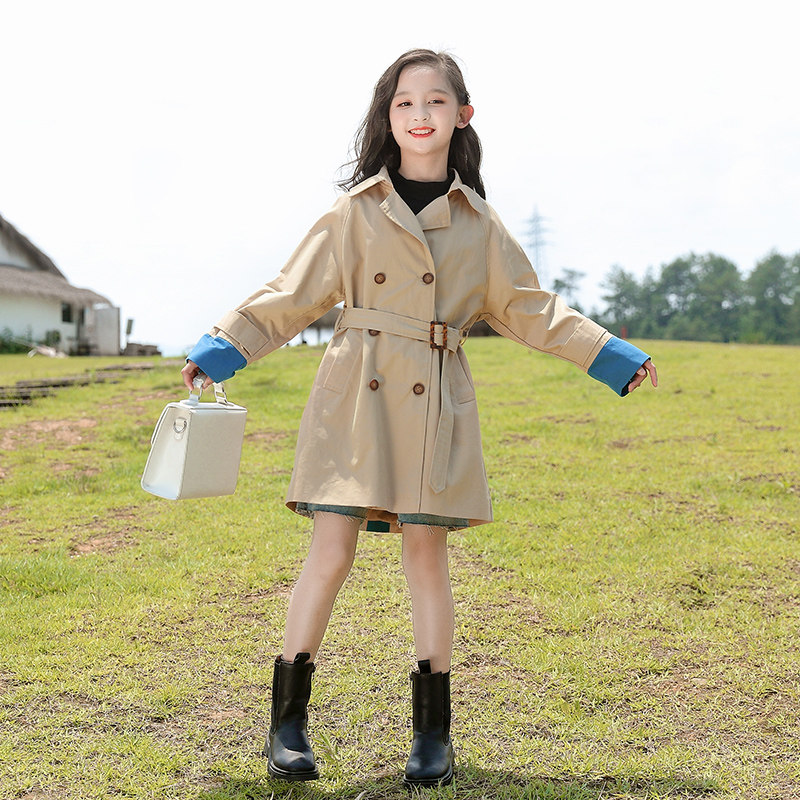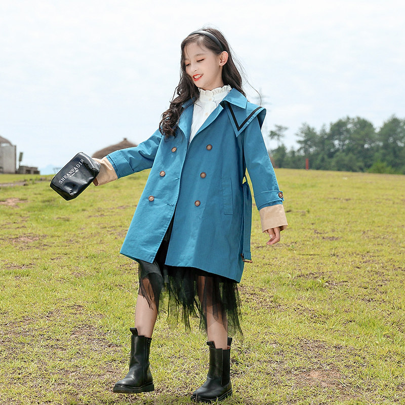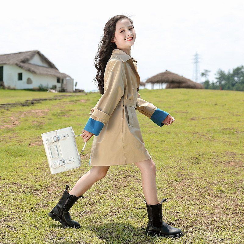 Girls' spring coat 2022 middle-aged children's foreign style net red windbreaker spring and autumn new children's Korean version medium-length coat