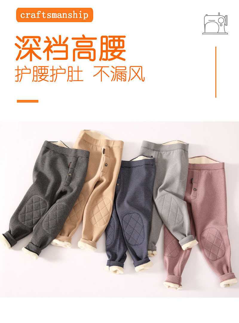 Male and female children plus velvet thickened kneecap high waist integrated suede cotton pants children with underpants lining pants underpants Trousers Warm Pants-Taobao