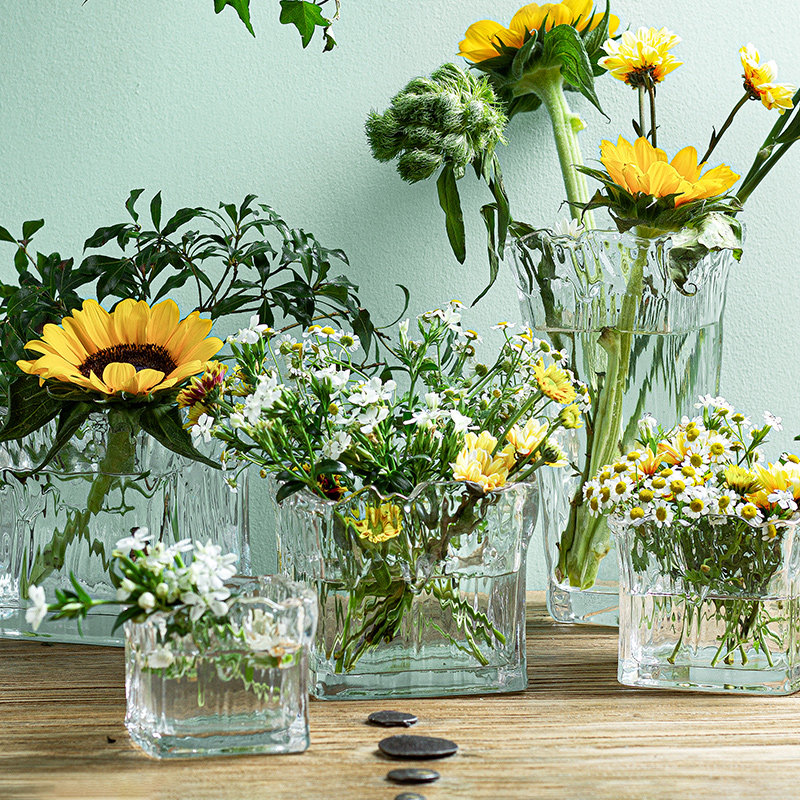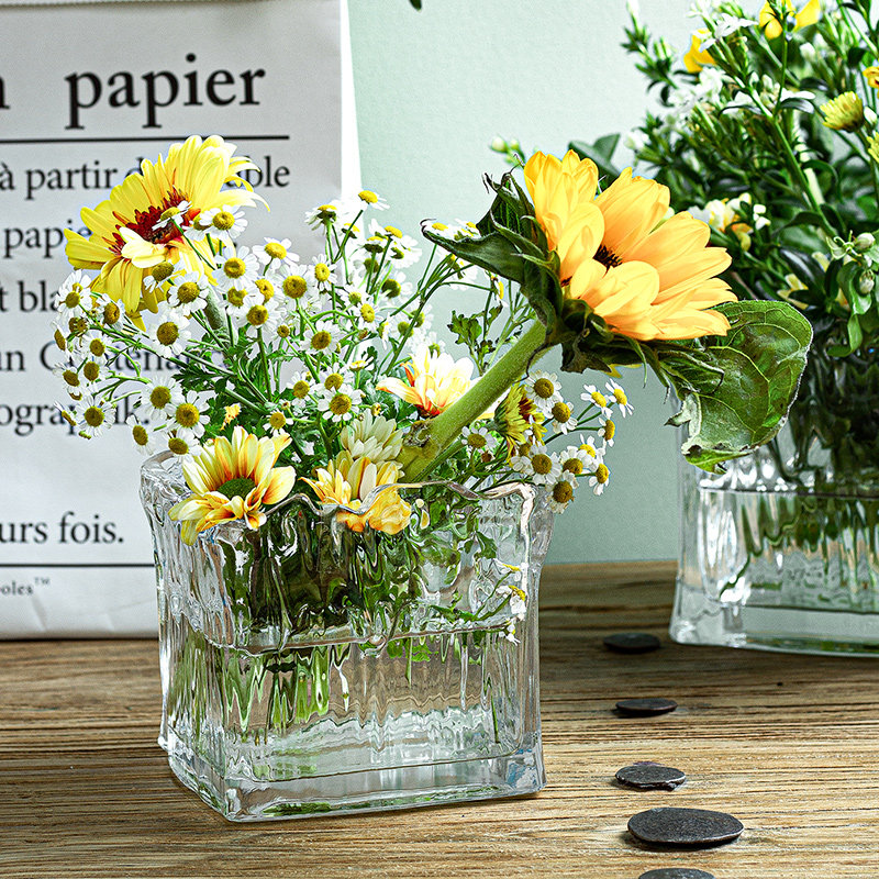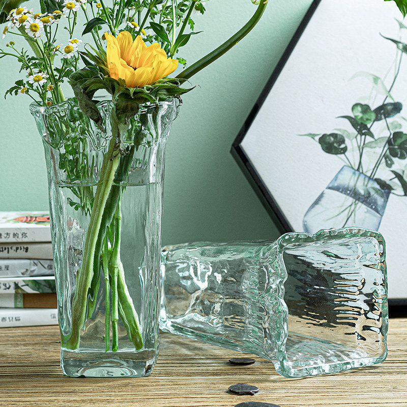 Light luxury high-end square vase transparent hydroponic ins ornaments high-end hydroponic French flower arrangement 2021 glass bottle