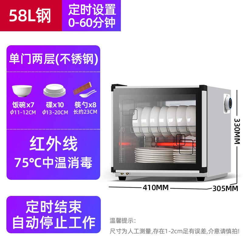 Stainless steel 58L 100 degrees (recommended) spray 38L 55 degrees send disc 68 liters Send chopstick frame water plate 88 liters Send chopstick frame stainless steel double door 98 liters