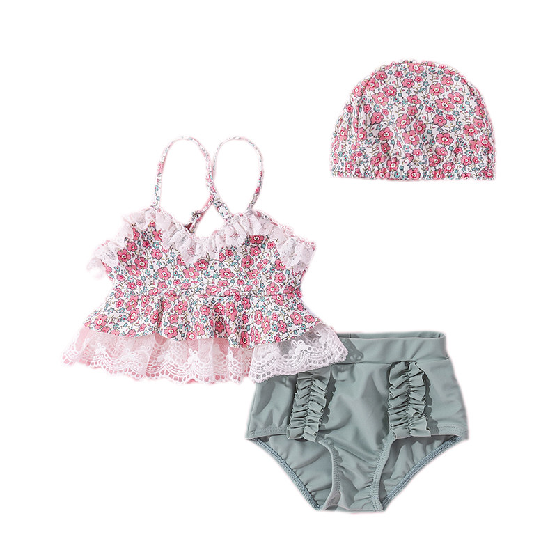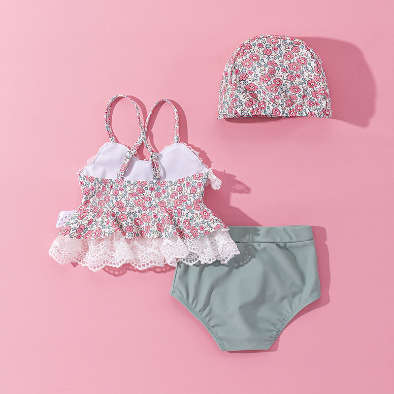 Female Baby Bubbles Spa Holiday Net Red Broken Flowers Harness Swimsuit 2022 Girl Cute Two-style Children Swimsuit Tide