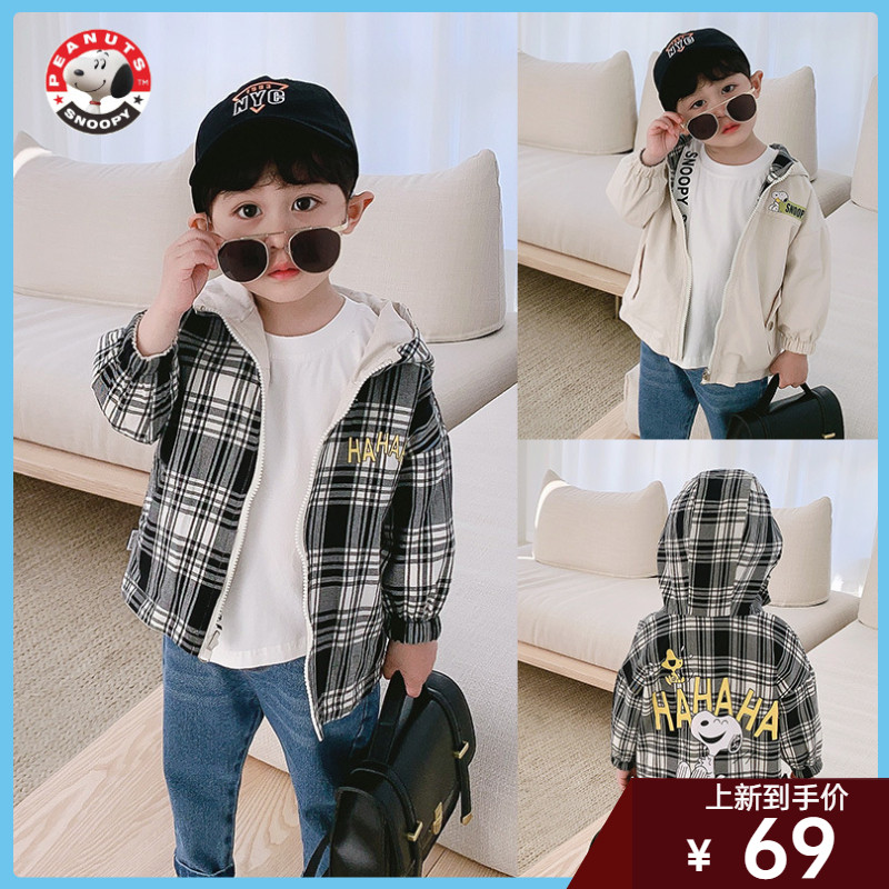Snoopy brand children's clothing spring and autumn children's jacket double-sided wear boy jacket baby plaid top middle and small children