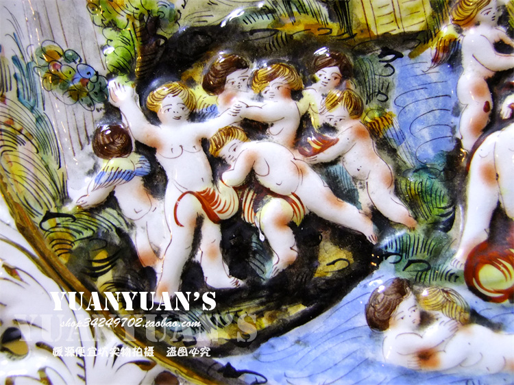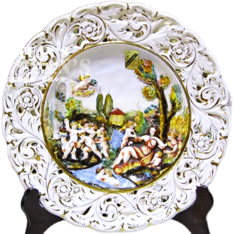 Italian antique capodimonte Capodimonte Baroque artist hand-painted angel relief disk
