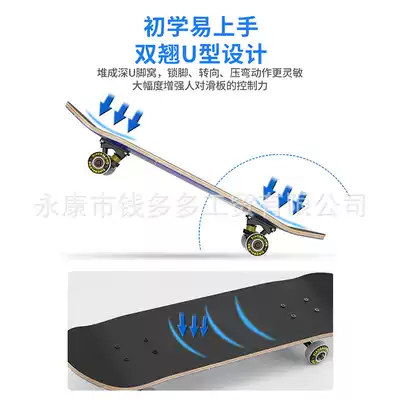 Beginner double wheel skateboard professional action Brush Street skateboard adult male and female youth children Girl Skateboard