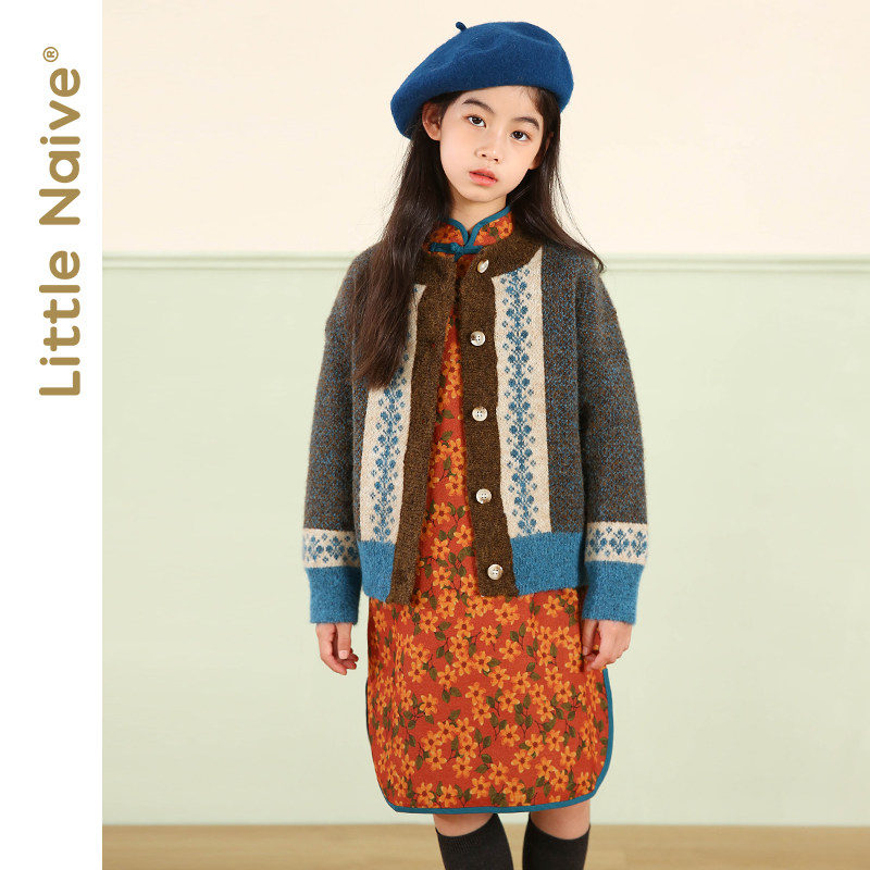 little-naive spring dress new girl cardiovert sweater retro children knit cardio-knitted cardiovert