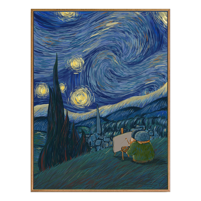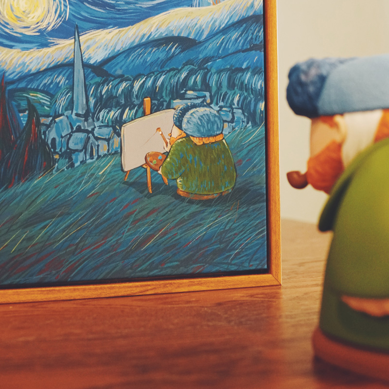 Mr. Van Gogh, Mr. Van Gogh in the crop field, Mr. da Vinci's studio, a drink of selfie girl on the window sill, a girl on the window, thank you for accompanying me, Darry