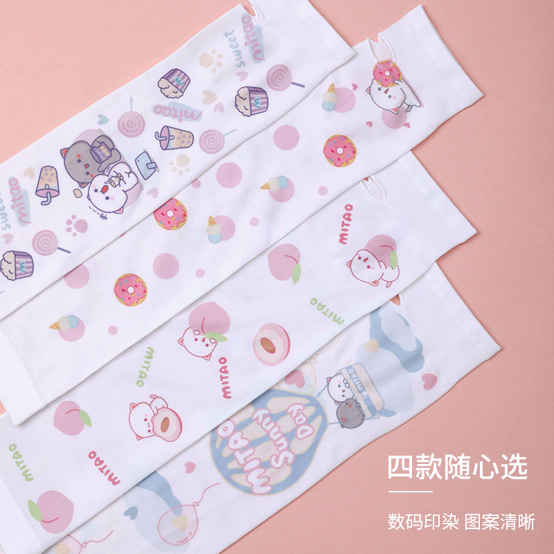 Room product peach cat cute arm guard sleeve new cartoon ice silk sleeve summer thin section sunscreen sleeve men and women long version