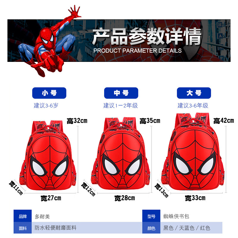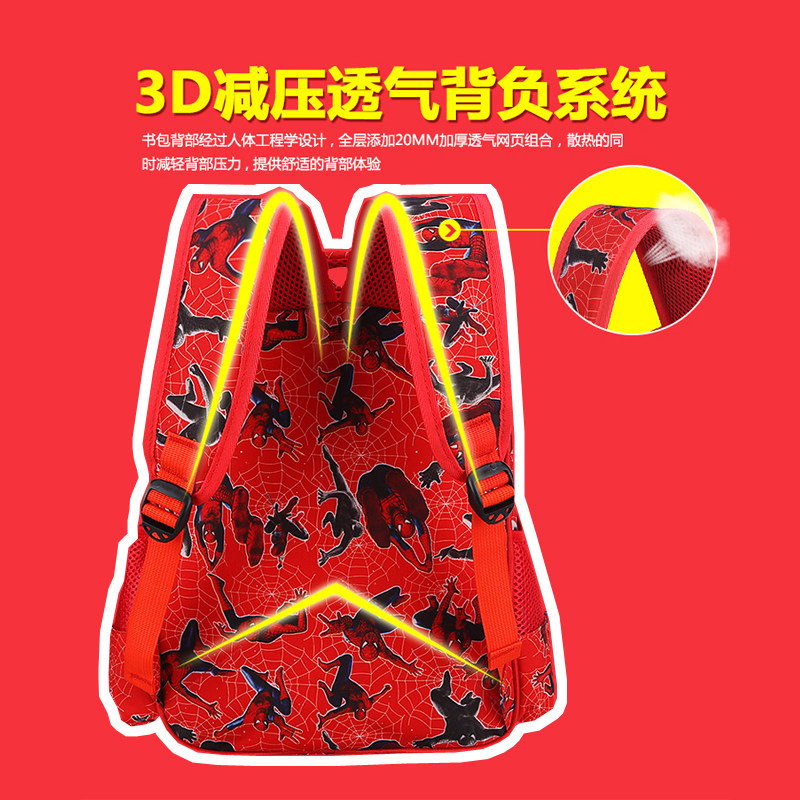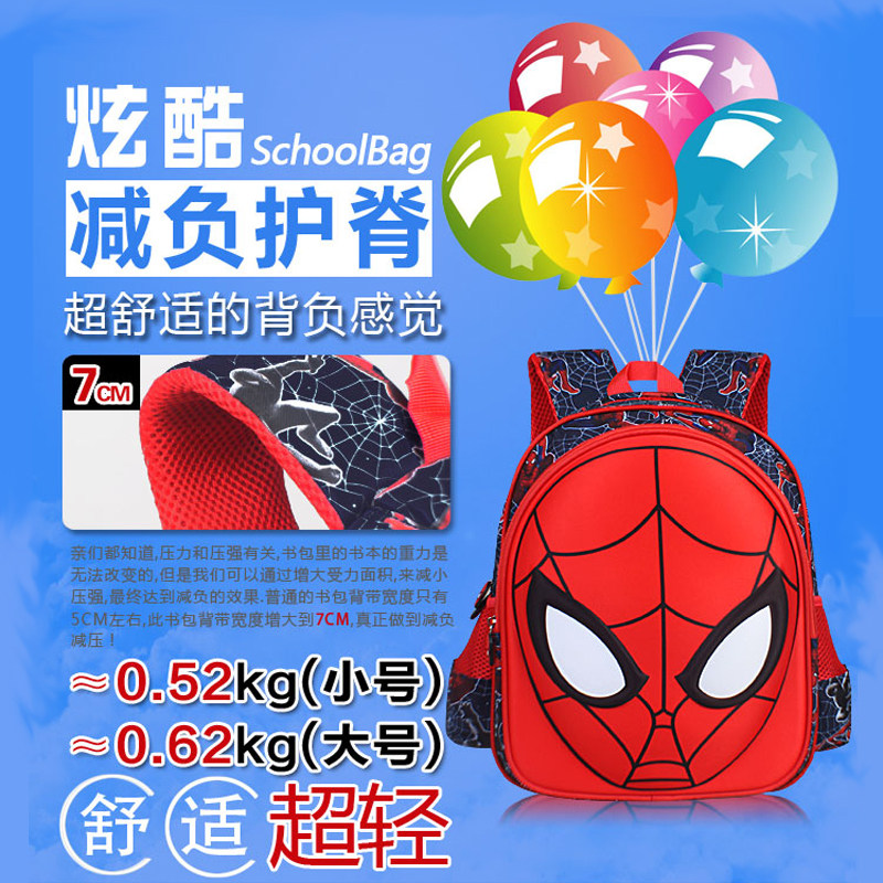 Spider man cartoon 3D bag kindergarten boy 3-6 years old pupil 1-5 grade waterproof wear and light