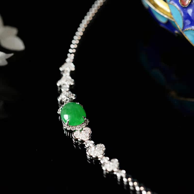 "Wei Family" Ice Breeds Yang Green Egg Noodles Myanmar Natural High-end A Goods Emerald 18K Platinum Inlaid Drilling Luxurious Hand Refining