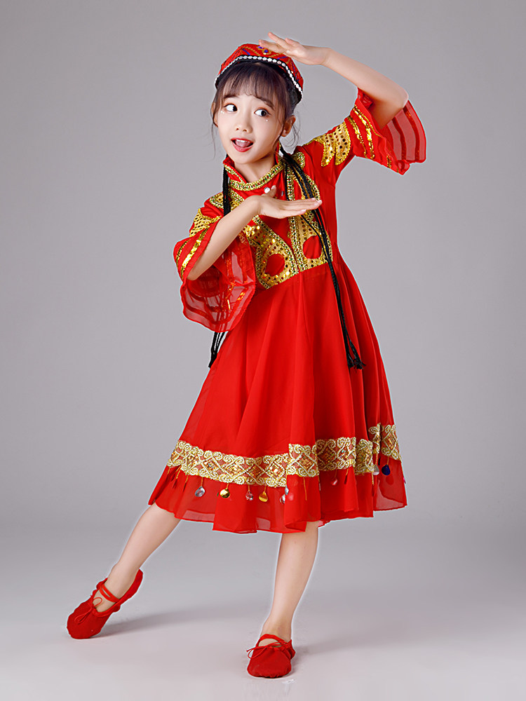 Children's Xinjiang Dance cast to serve Hui ethnic Kazakhs girls practice dance large pendulum skirt Summer minority dress