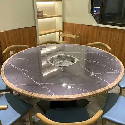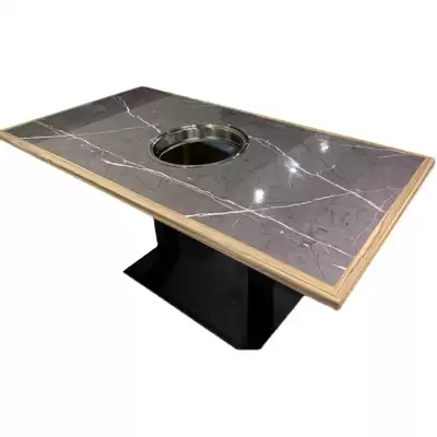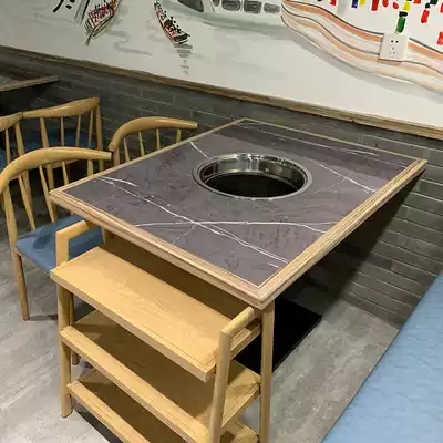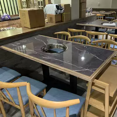 Marble hot pot table induction cooker integrated commercial self-service smoke-free hot pot shop table and chair rock board string table customization