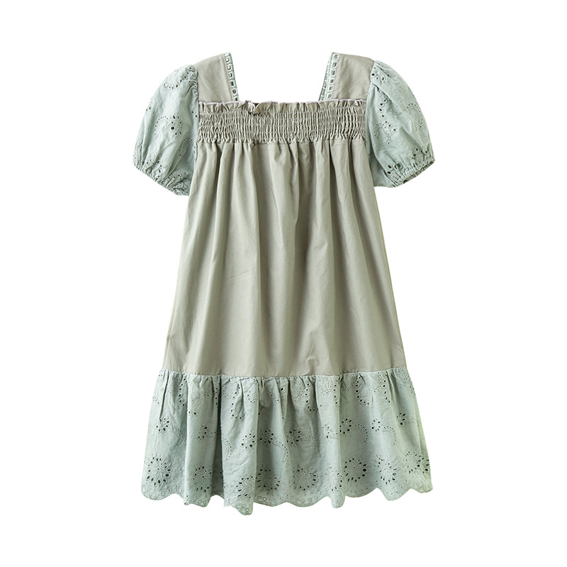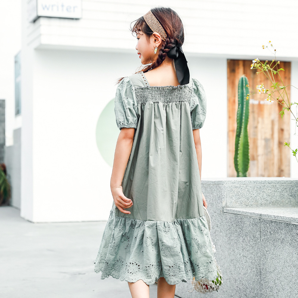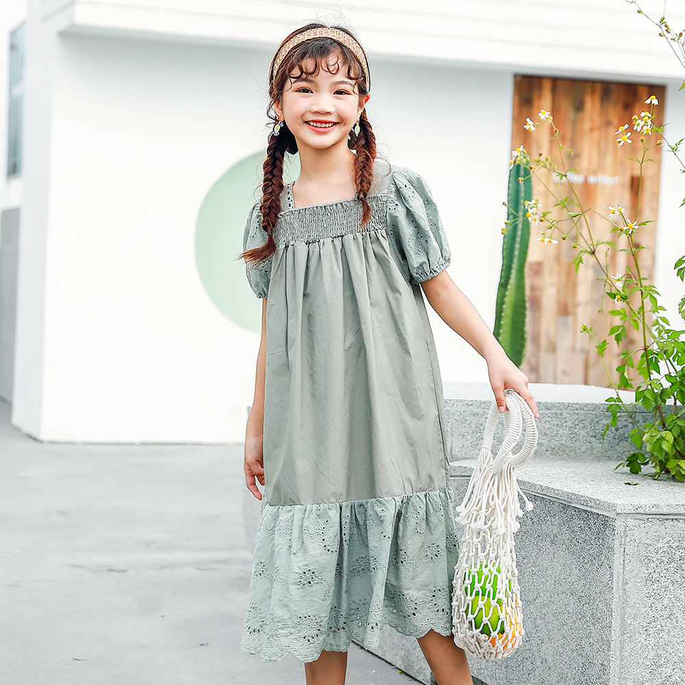 The hollow - hollow children's dress splicing dress in the summer of 2021 new bubble sleeve dress Han - Edition fashion princess
