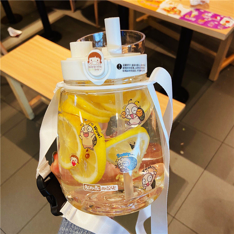 Cute big belly water glass 2021 Summer new portable big number sport kettle female mesh red large capacity straw mug
