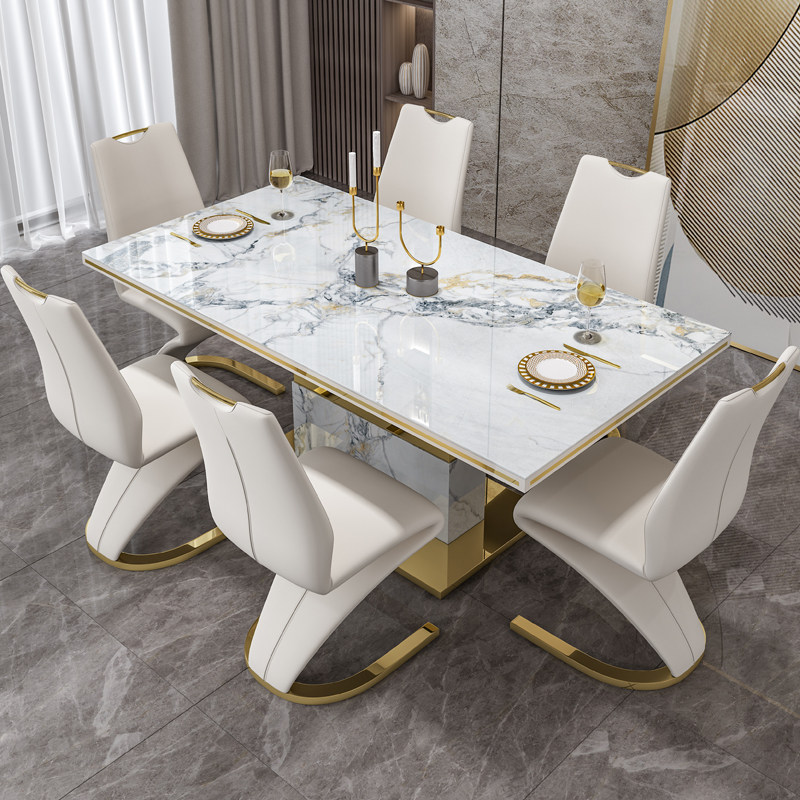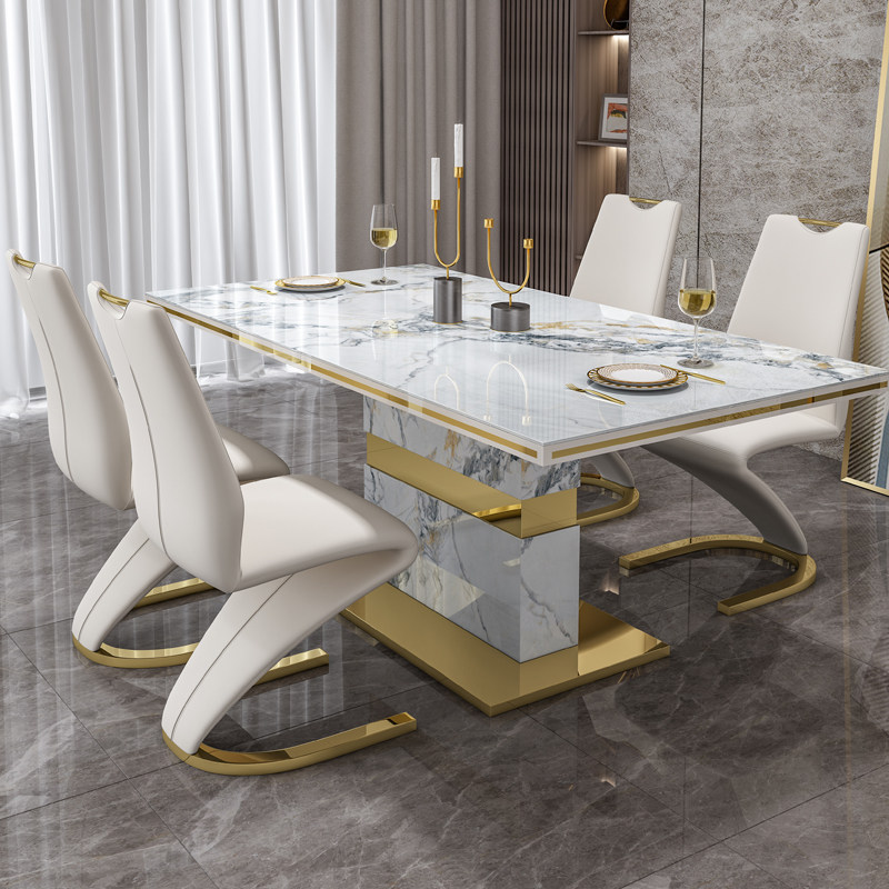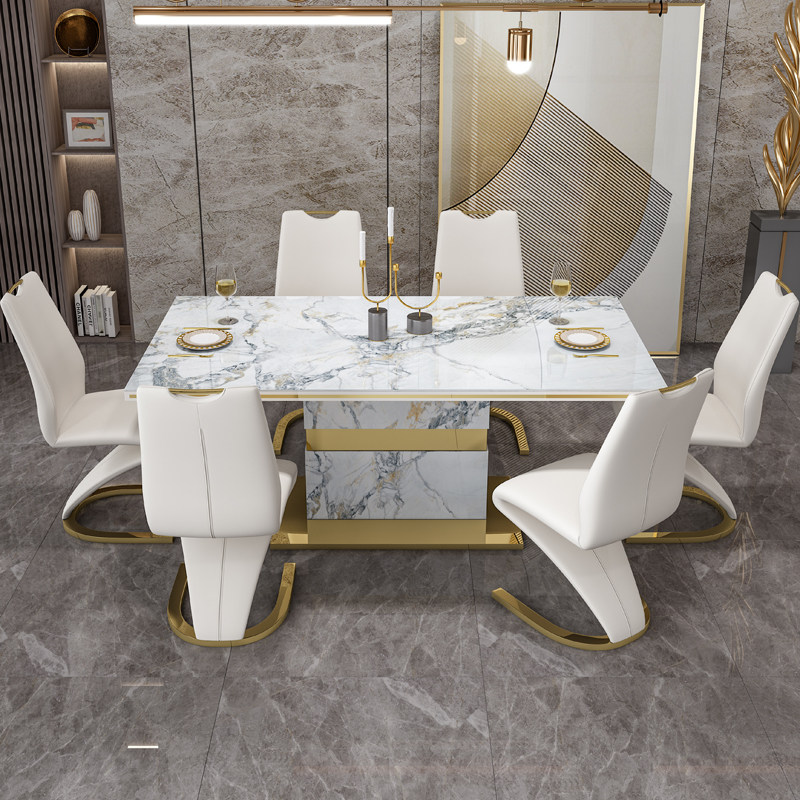 Bright slate dining table home modern minimalist light luxury high-end rectangular dining table and chair combination dining table